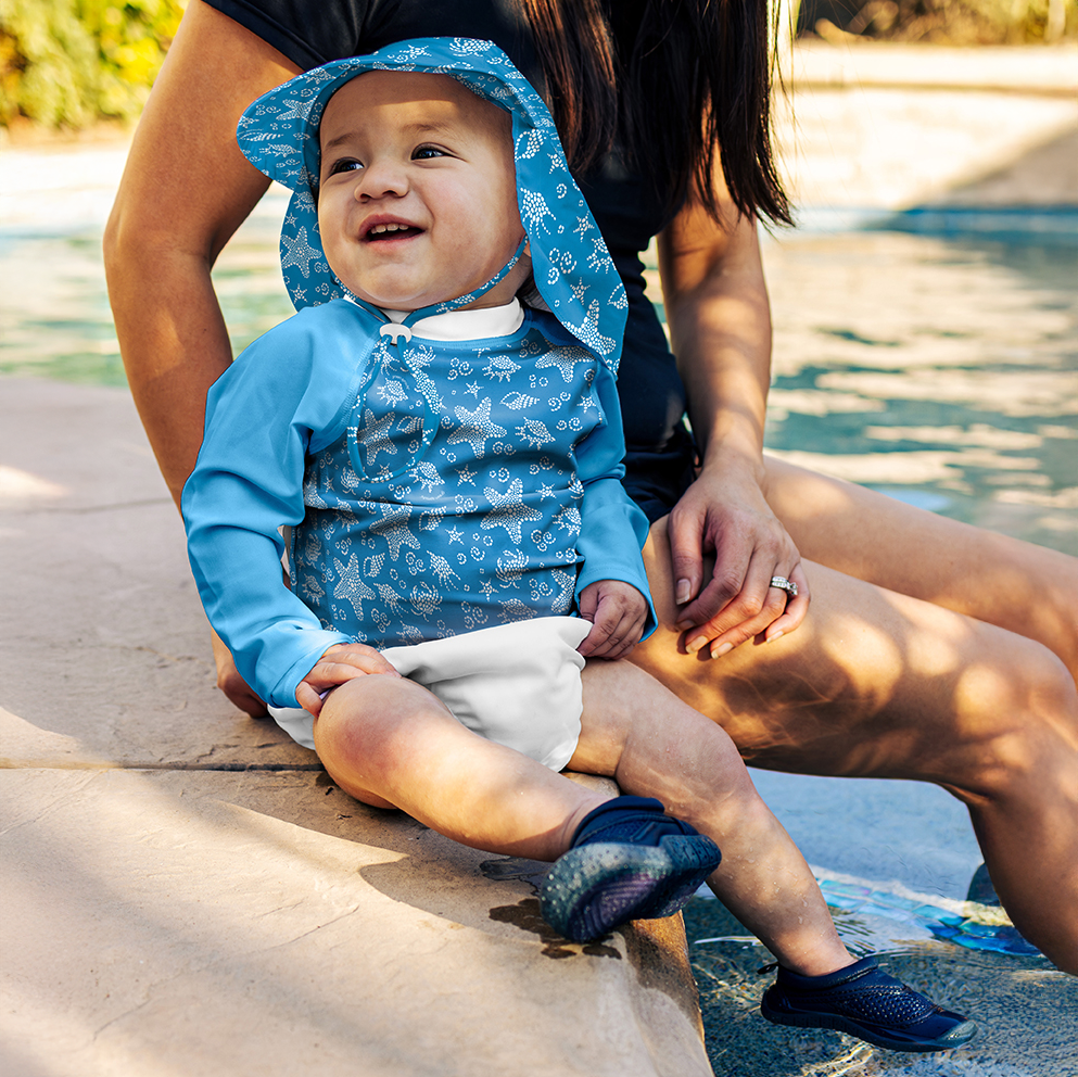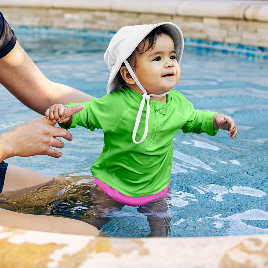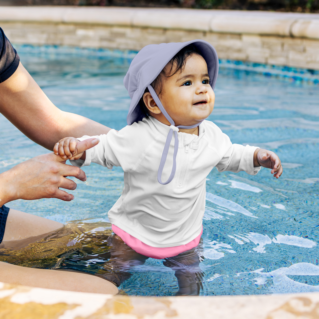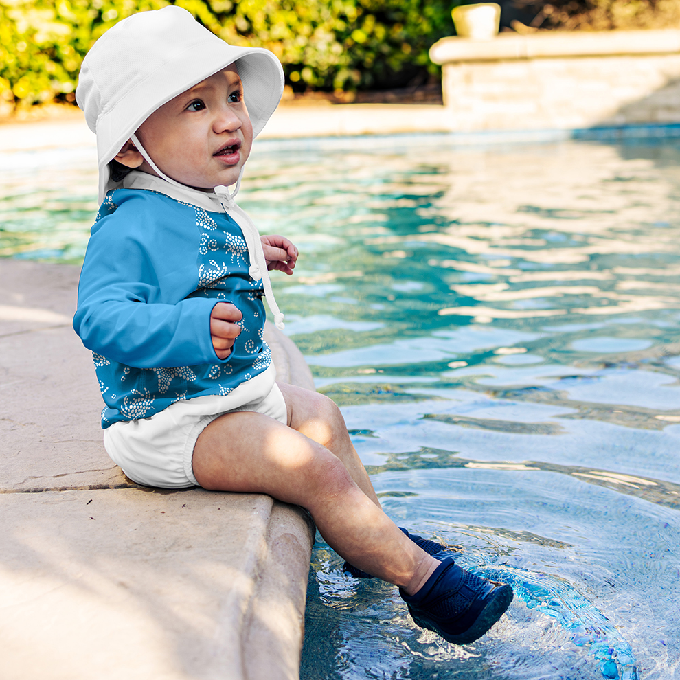 Mix and match our products to create your perfect swim and sun ensemble. From sun hats to rash guards, coordinate colors and patterns to design the perfect look for your little one! Remember to pack 2-3 diapers for a day at the beach or pool—that leaves a lot of opportunity for styling!