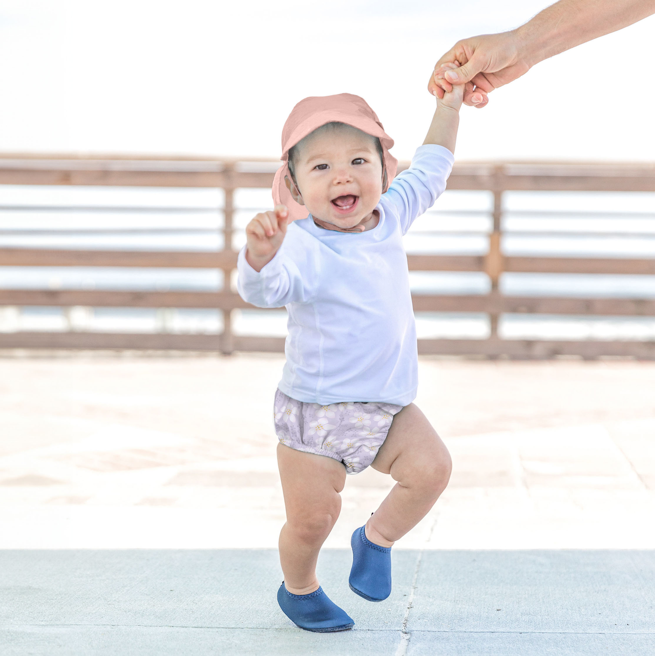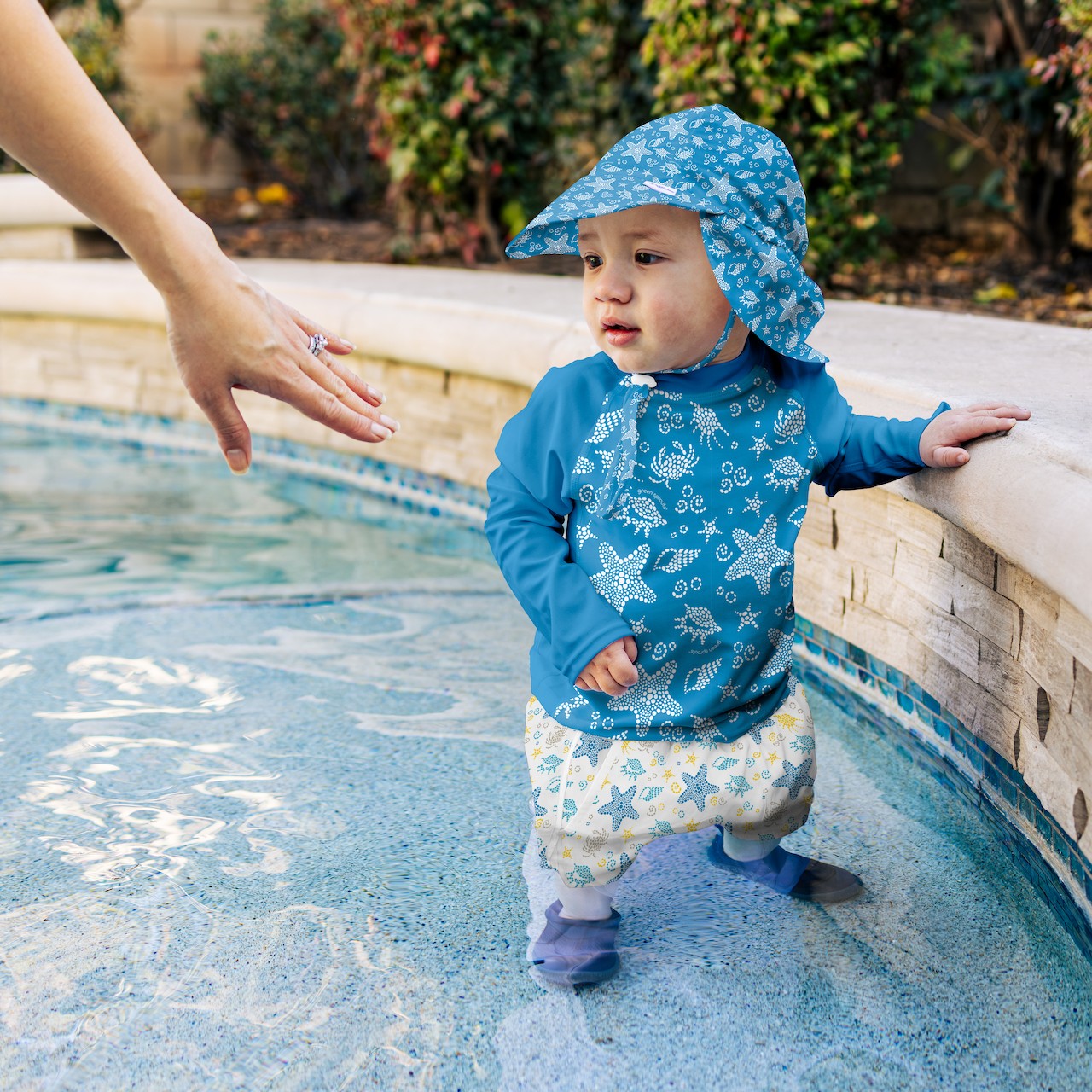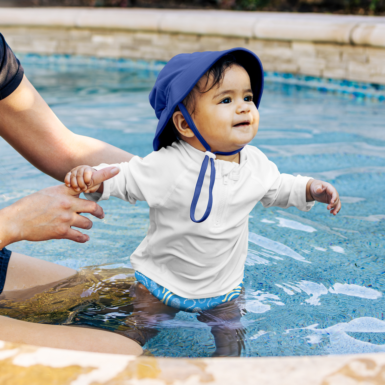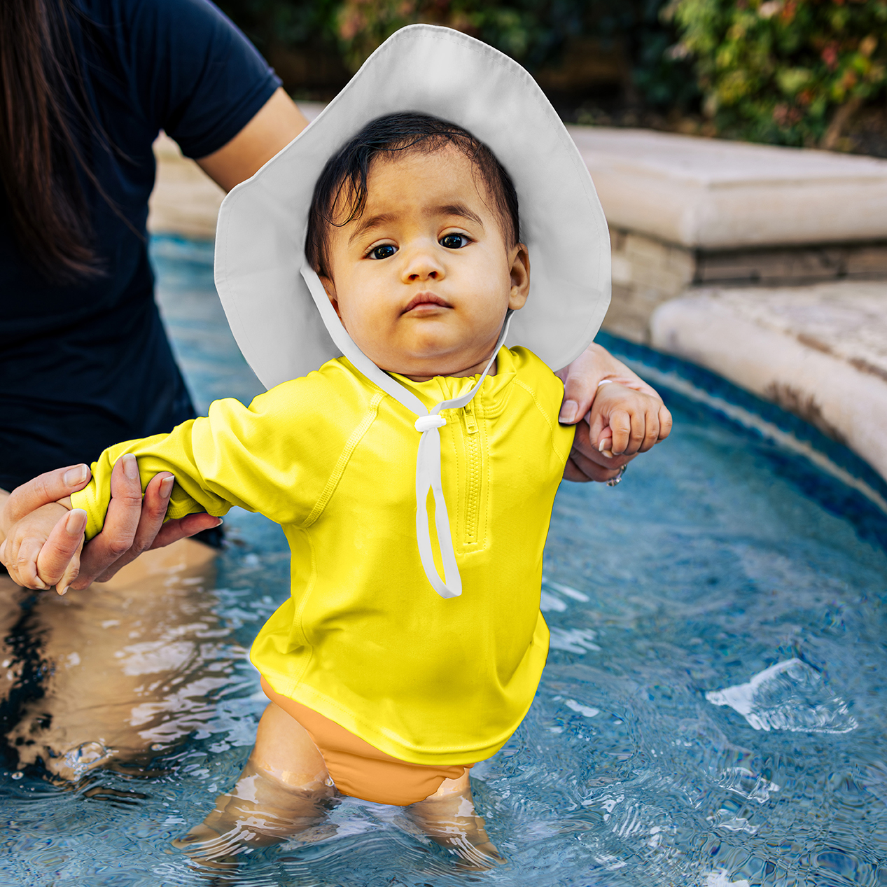 Mix and match our products to create your perfect swim and sun ensemble. From sun hats to rash guards, coordinate colors and patterns to design the perfect look for your little one! Remember to pack 2-3 diapers for a day at the beach or pool—that leaves a lot of opportunity for styling!