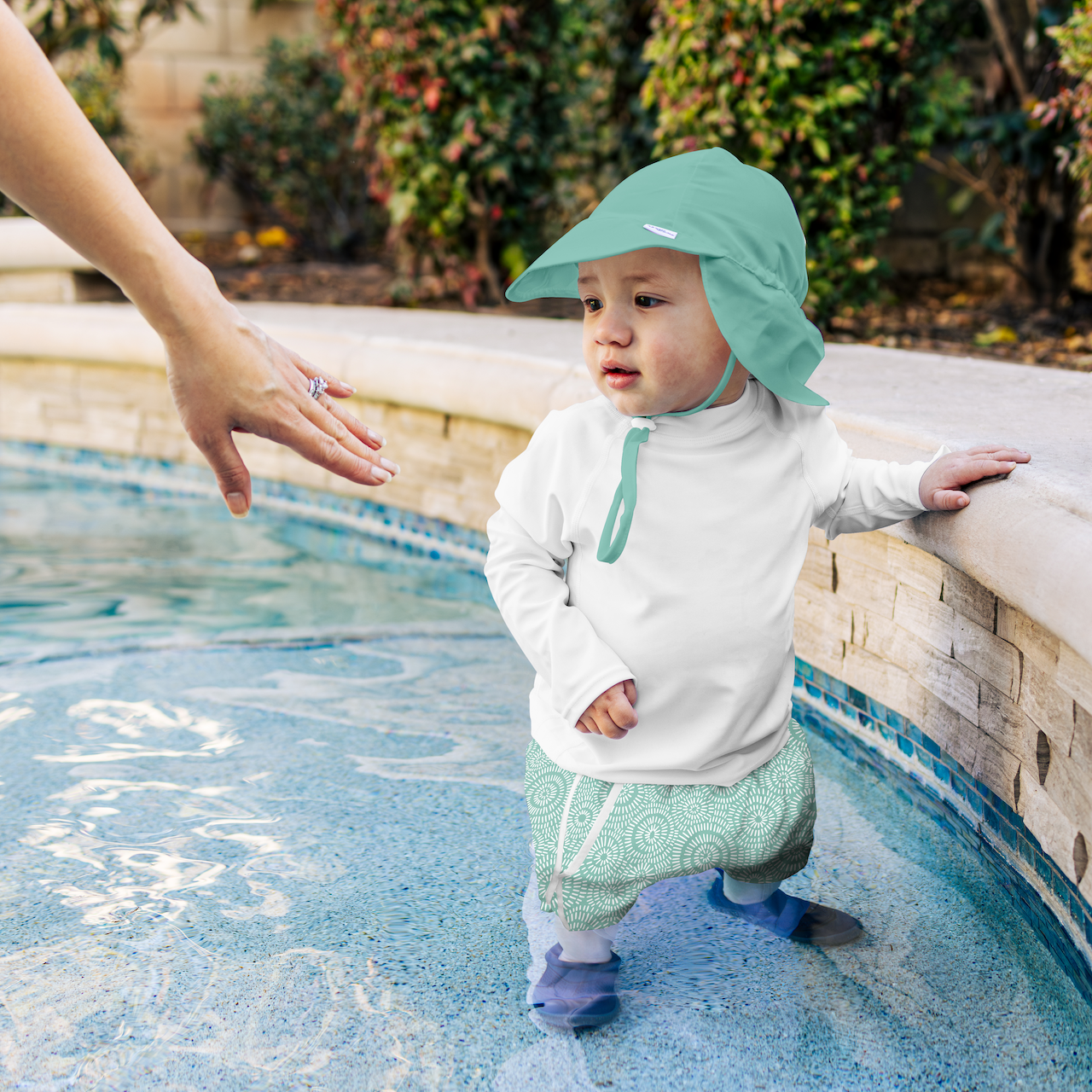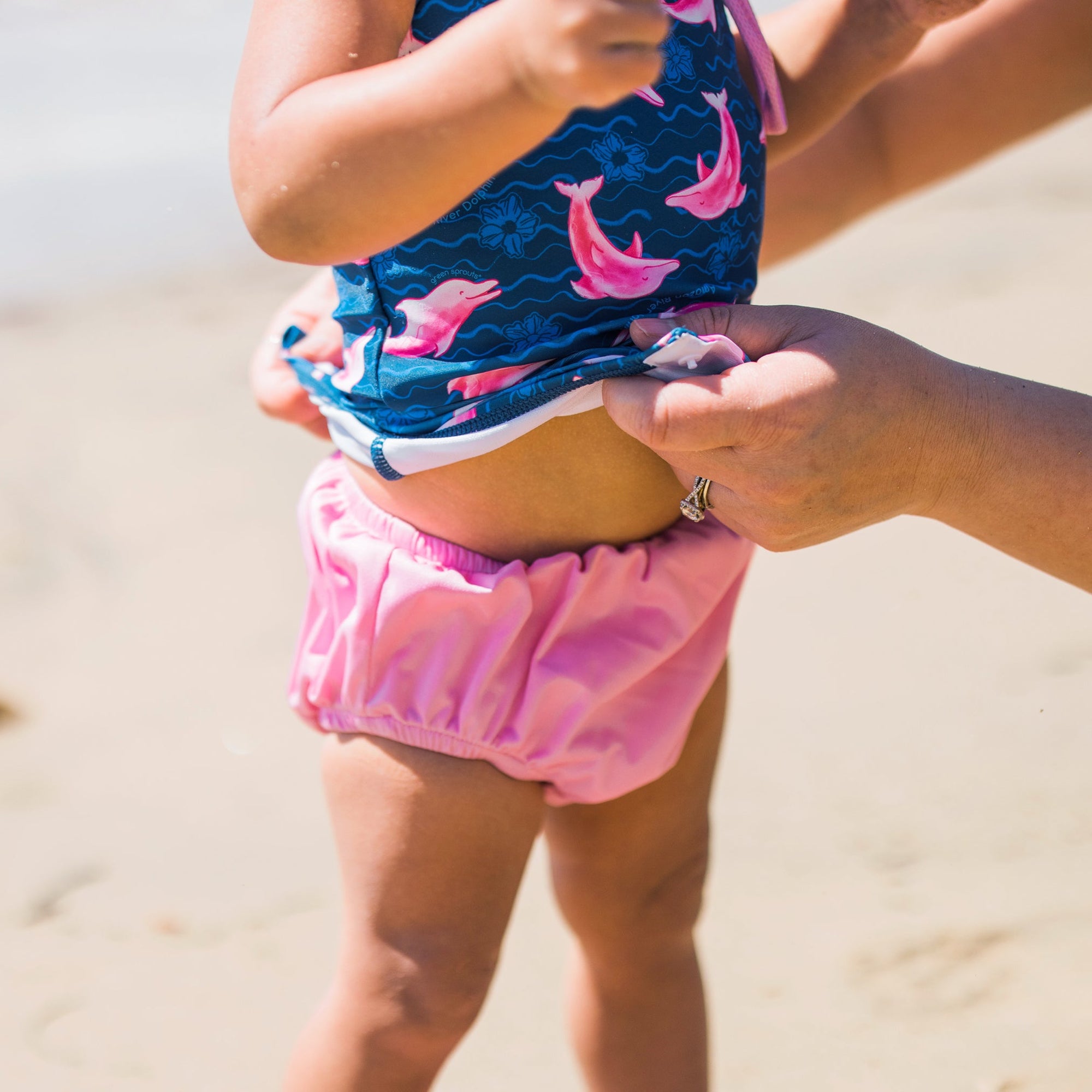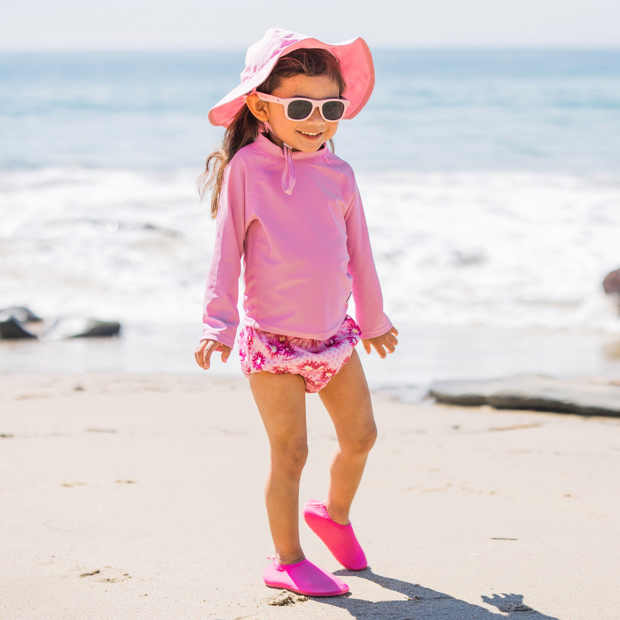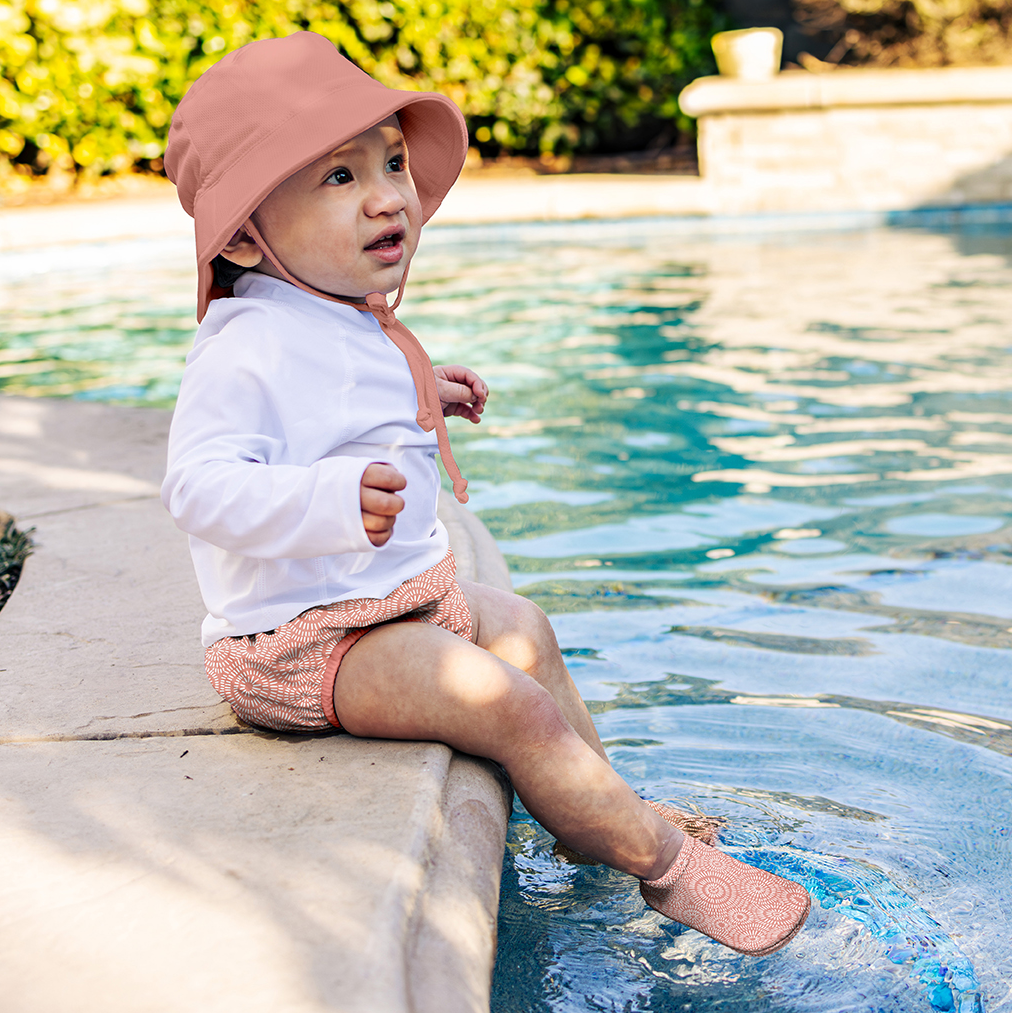 Mix and match our products to create your perfect swim and sun ensemble. From sun hats to rash guards, coordinate colors and patterns to design the perfect look for your little one! Remember to pack 2-3 diapers for a day at the beach or pool—that leaves a lot of opportunity for styling!