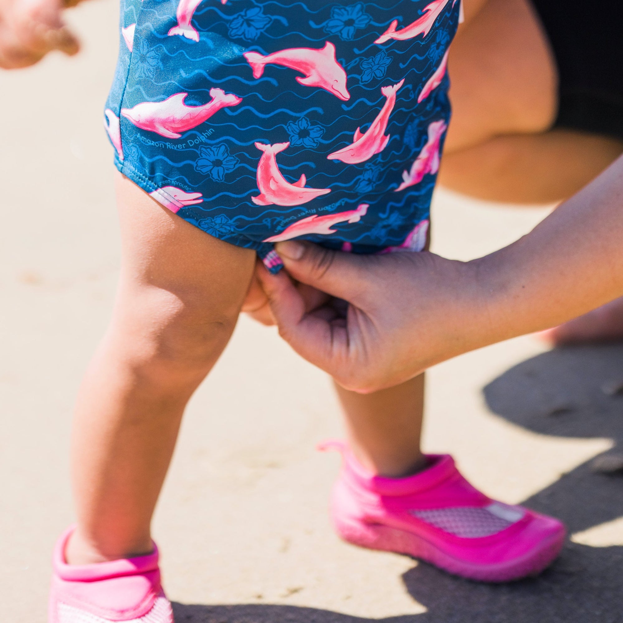 “I love these - replaced our single-use swim diapers with this lovely product and am so glad I did. Comfortable for the kiddo, clearly well constructed, and the pattern is adorable! My kiddo has worn this for 3 consecutive weekends and loves it! Two thumbs up.” — Heather