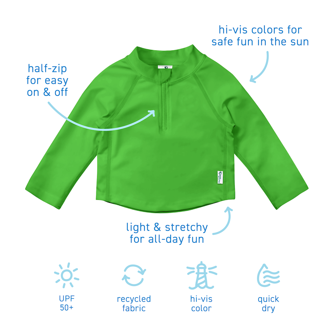 Green Sprouts swim safety line not only looks adorable but also keeps kids safe in and around the water. Swimwear colors that enhance visibility in a pool and beach setting are crucial for promoting safety.