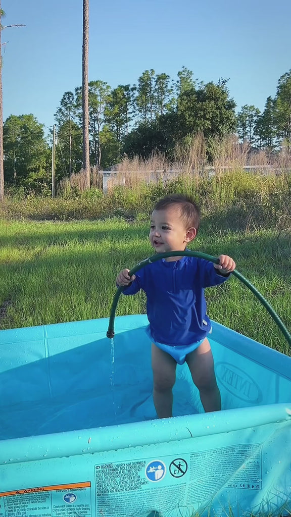 All-day sun protection, wet or dry—Our infant and toddler rash guards keep baby covered all day, in and out of the water, reducing sunscreen needs in those areas.
